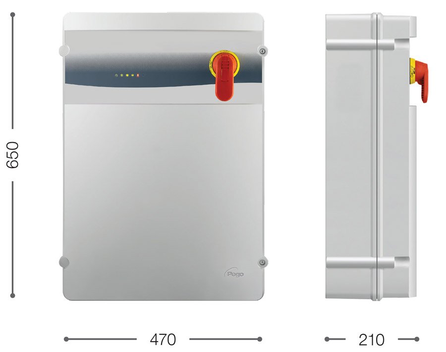 - Cuadro compacto de ABS autoextinguible con grado de protección IP 65 y seccionador en la parte frontal del cuadro.