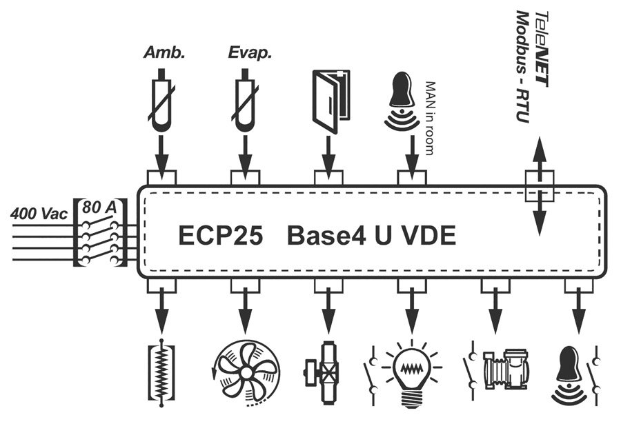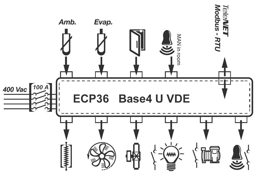 Gestión exclusiva de la unidad de evaporación con descongelación eléctrica hasta 42 Kw.