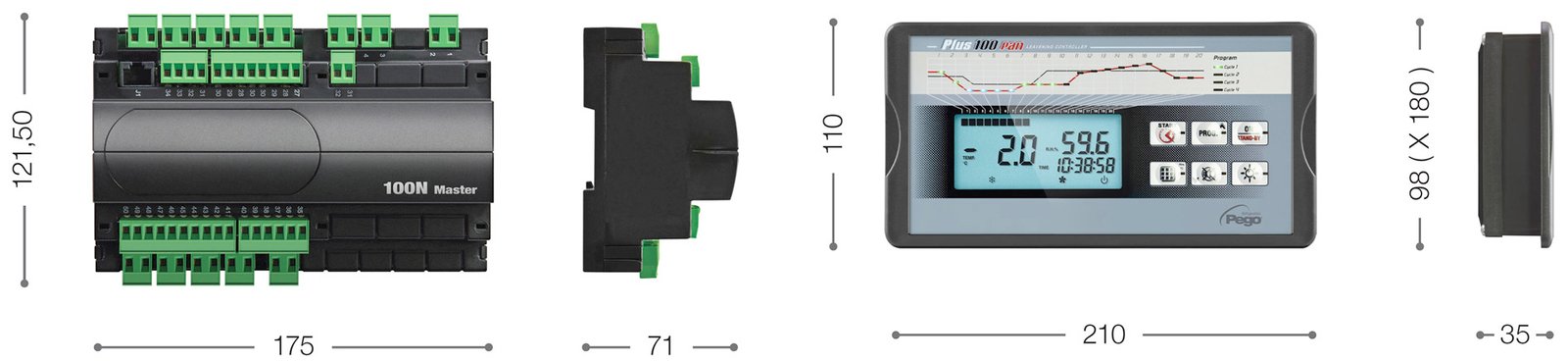 MASTER: 175x121,5x71 mm PLUS100 PAN: 210x110x35 mm