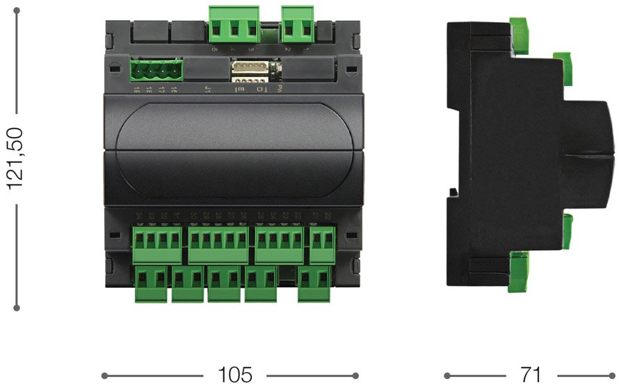 - Configurabile per la gestione giorno/notte (modifica automatica del setpoint per il risparmio energetico) attivabile tramite fascia oraria (real time clock) o per mezzo dell’ingresso digitale.