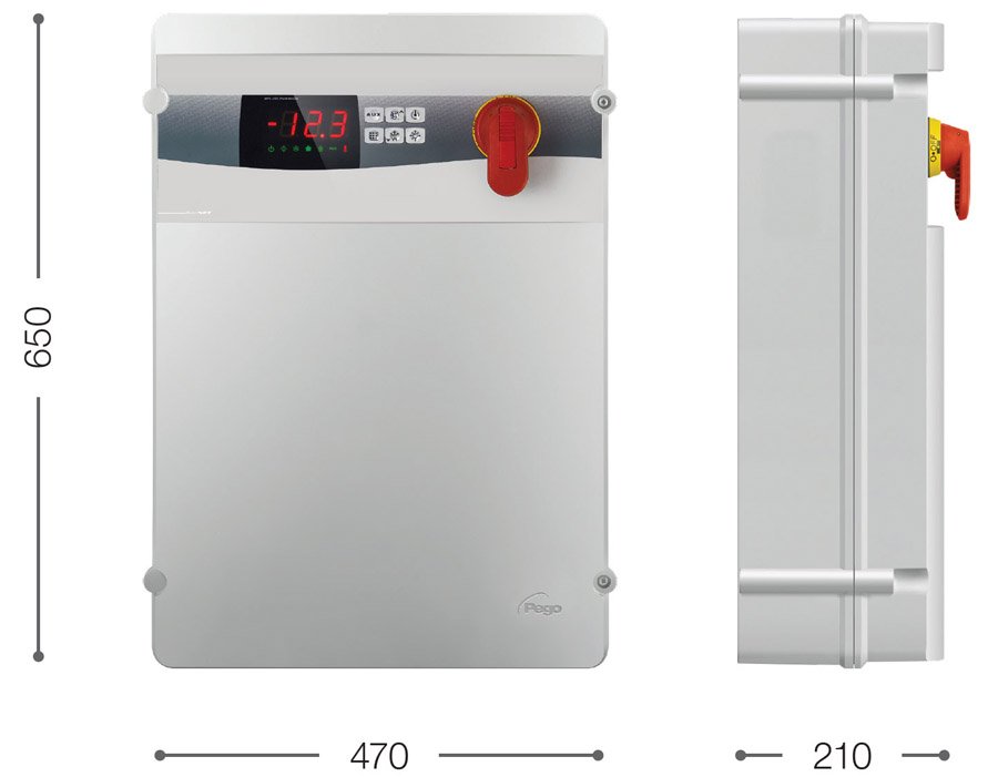 - Gestione diretta di compressore, ventole del condensatore, resistenza olio compressore, resistenze di sbrinamento, ventilatori dell’evaporatore, valvola solenoide, luce cella e tutte le protezioni elettriche previste dalle normative.