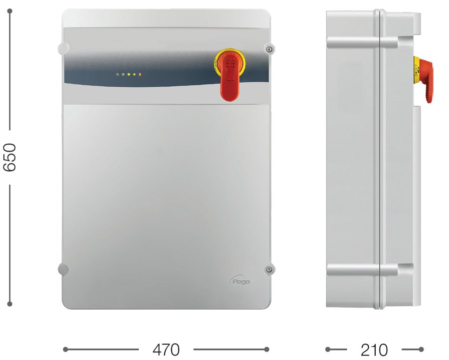 - Quadro compatto in ABS autoestinguente con grado di protezione IP65 e sezionatore a frontequadro.