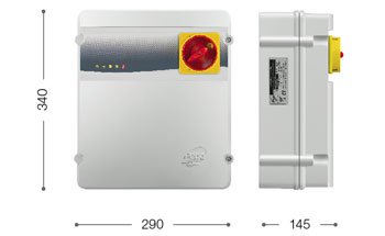 - Quadro compatto in ABS autoestinguente con grado di protezione IP65 e sezionatore a fronte quadro.