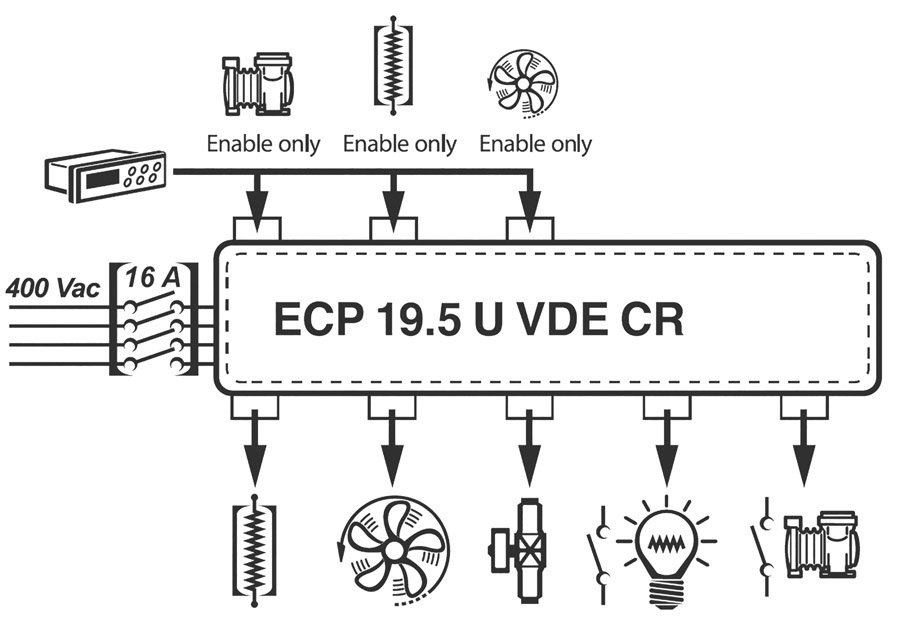 Gestione della sola unità evaporante con sbrinamento elettrico fino a 42 kW.
