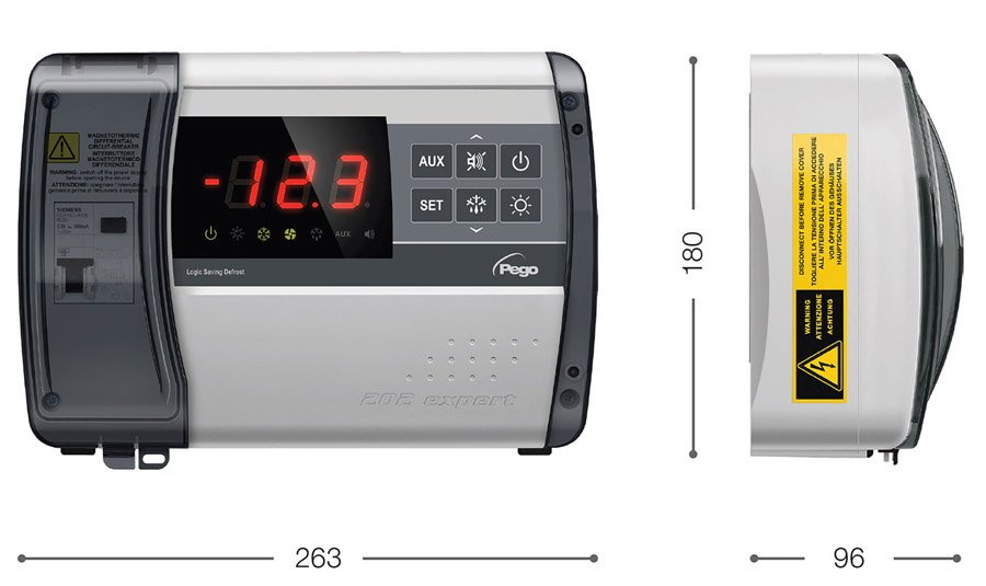Gestione completa di impianti frigoriferi monofase fino a 2HP statici o ventilati, con sbrinamento a sosta o elettrico, con fermata compressore diretta o in pump-down.